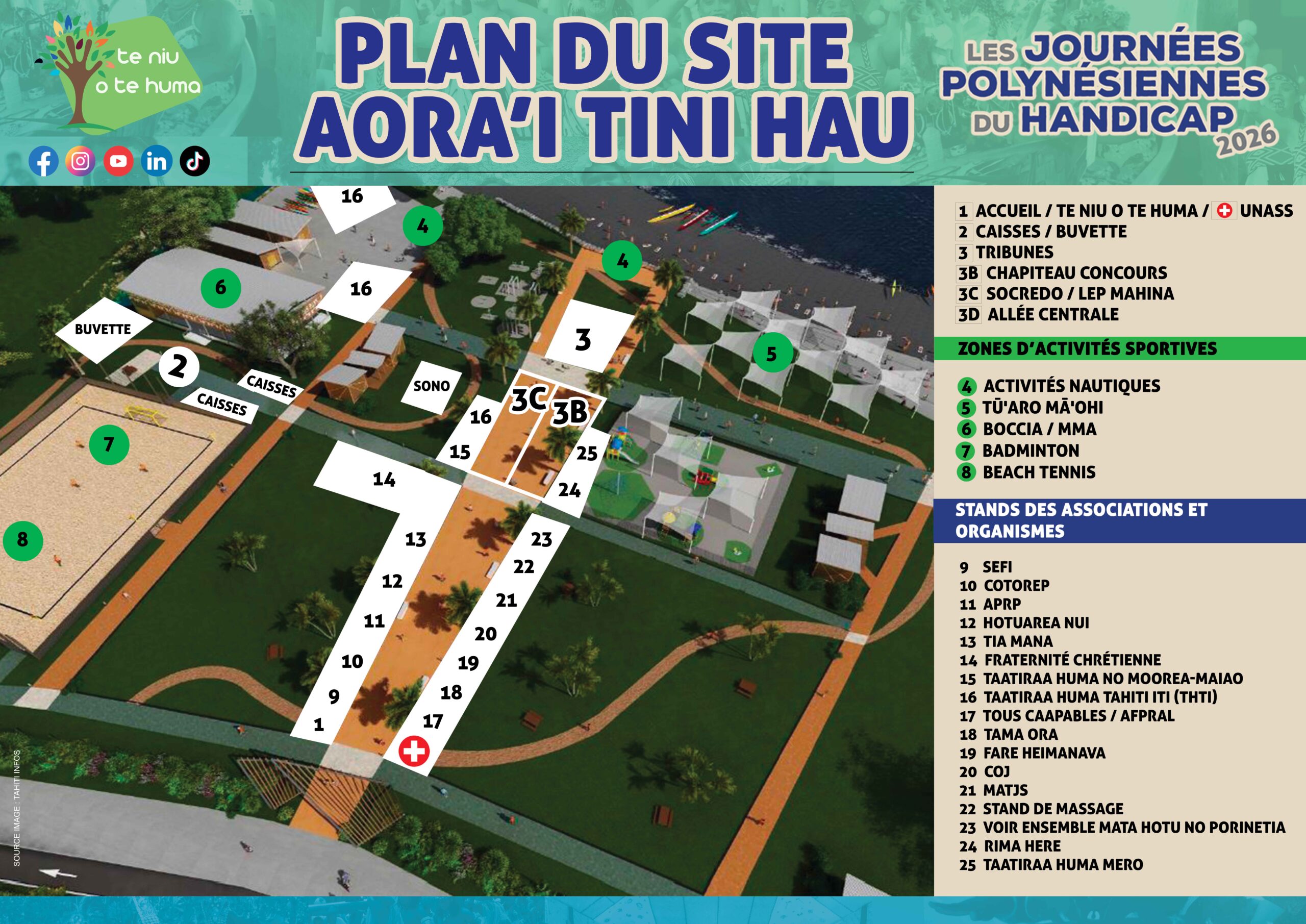 Découvrez le plan du site Airai Tini Hau, lors de nos Journées Polynésiennes du Handicap 2026, ci-dessous :